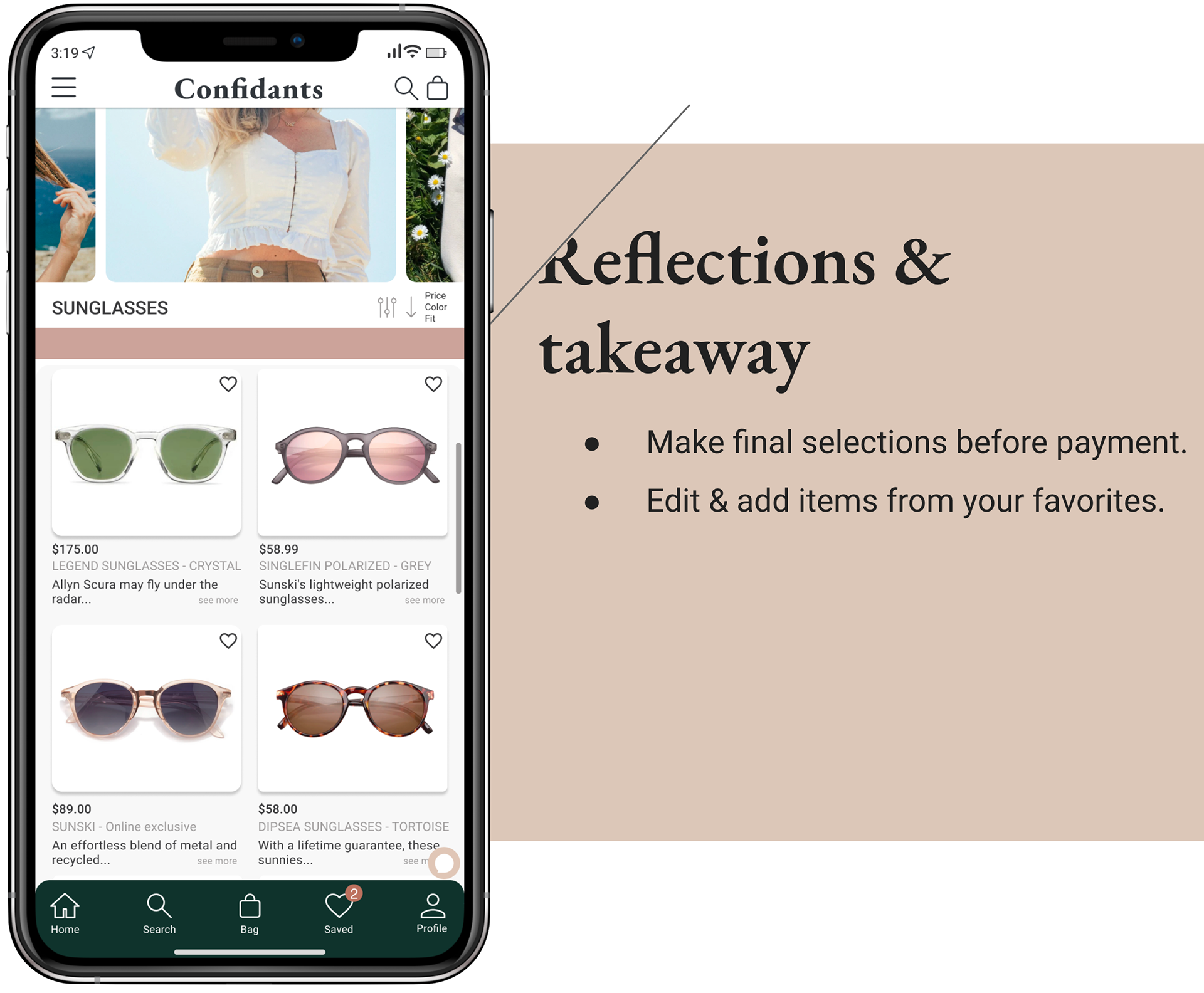 The final product received rave reviews from the client, and target users praised the seamless shopping experience and the convenience of saving items for later.